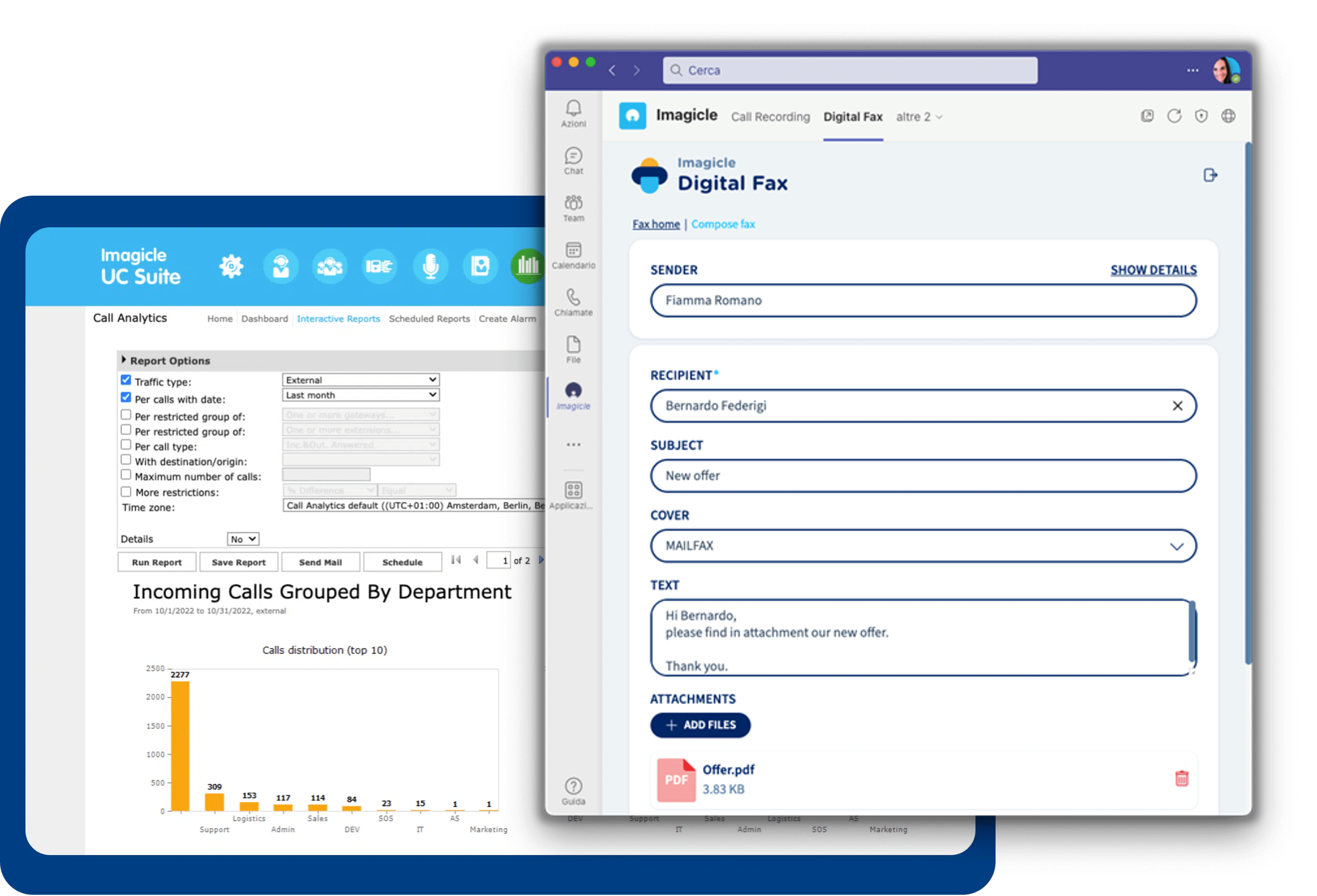 Transforming Microsoft Teams into a full-on communication tool, Digital Fax allows to get rid of ATA, fax machines, toner, and paper, allowing to send and receive faxes directly from the Microsoft Teams client. Completing the picture is Call Analytics, allowing a full monitoring of telephone traffic, costs, and adoption.