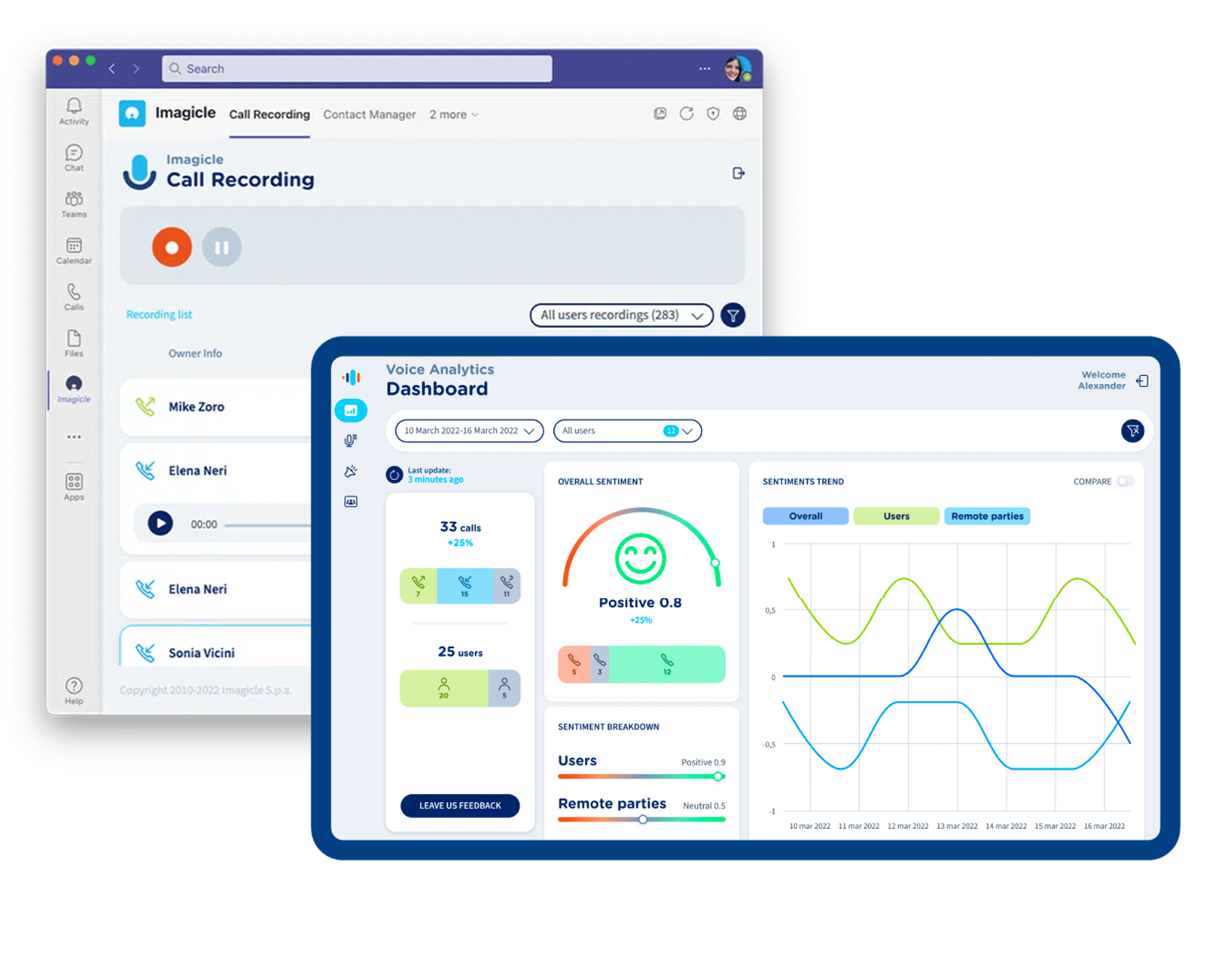 Imagicle enhances Microsoft Teams with a platform of AI-infused apps that welcome callers, automate conversations, ensure compliance, and analyze calls, all while offering security and reliability with an easy and unified experience. Discover how it can take your communications to the next level.