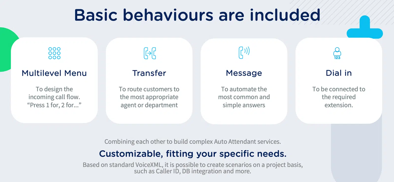 Imagicle Auto Attendant is the welcome solution to easily create call flows with customized voice prompts and call transfer to specific users, queues, or external numbers.