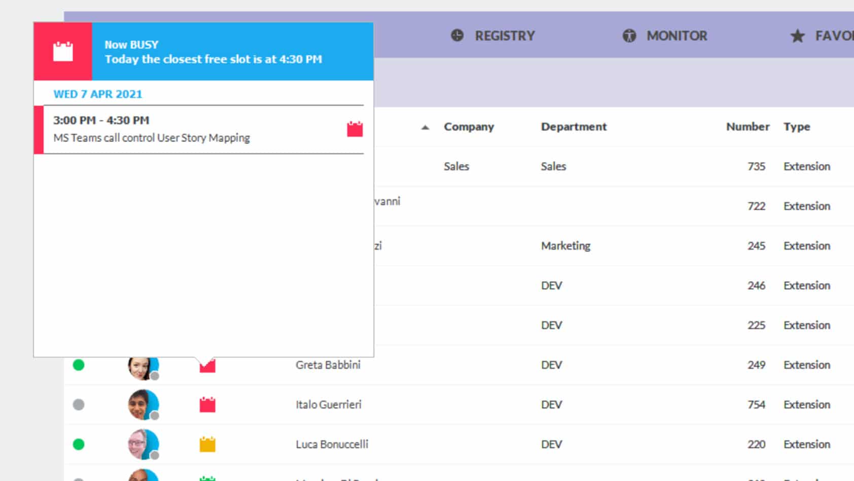 - Compruebe cuándo debe transferir las llamadas consultando el estado de los de los compañeros