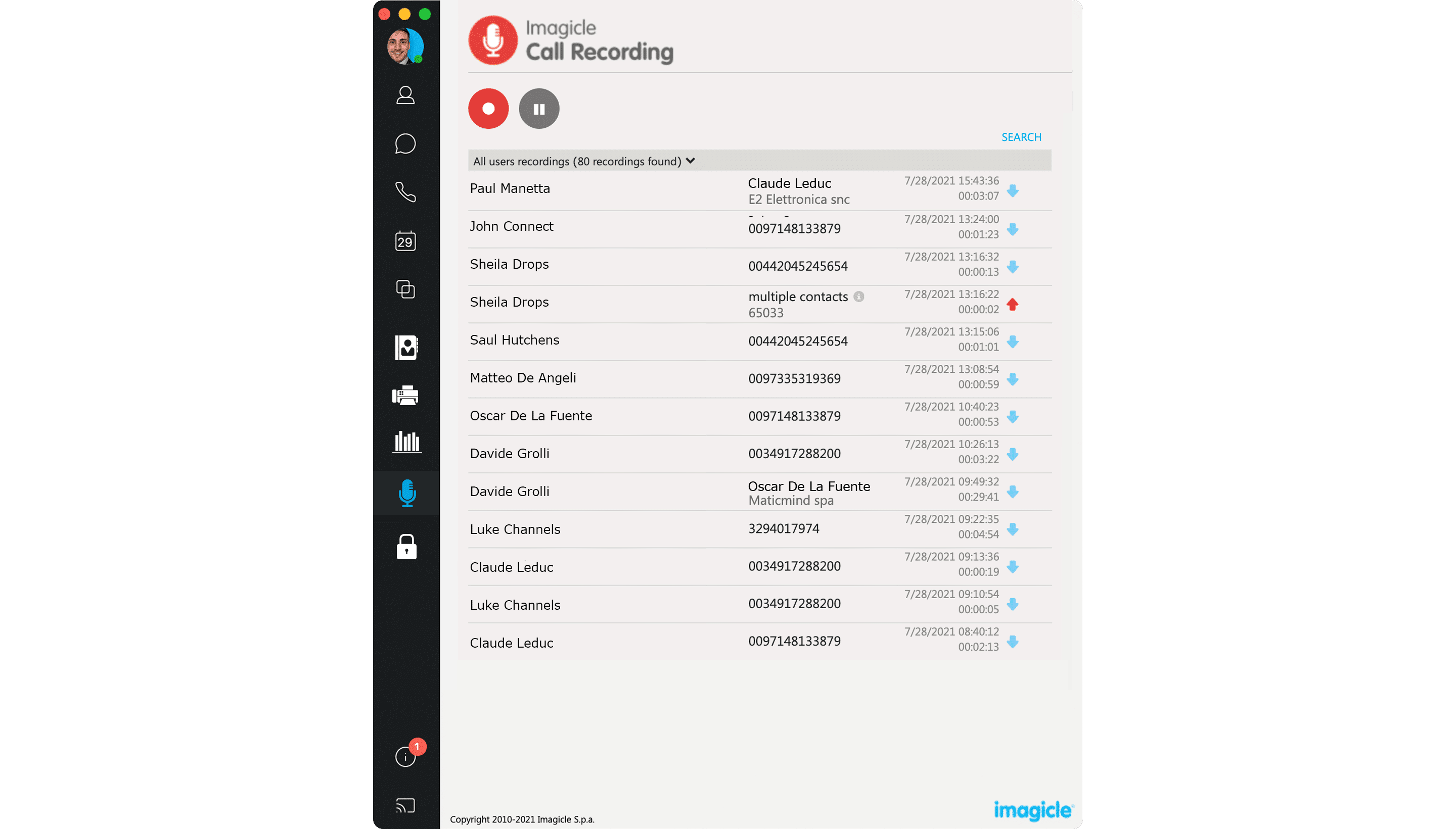 | Call Recording | MICROSOFT | MS-Teams Desktop and Mobile client | Native Microsoft Cloud Integration. Access to recordings through Imagicle Call Recording App |
